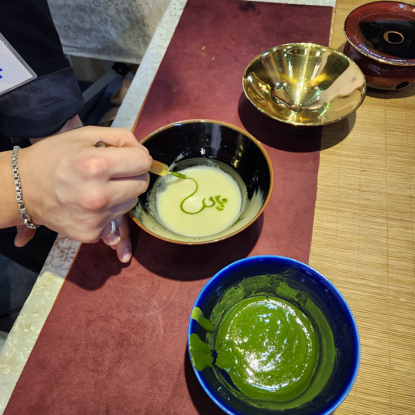 말차 거품위 말차가루로 작품을 주신다.
